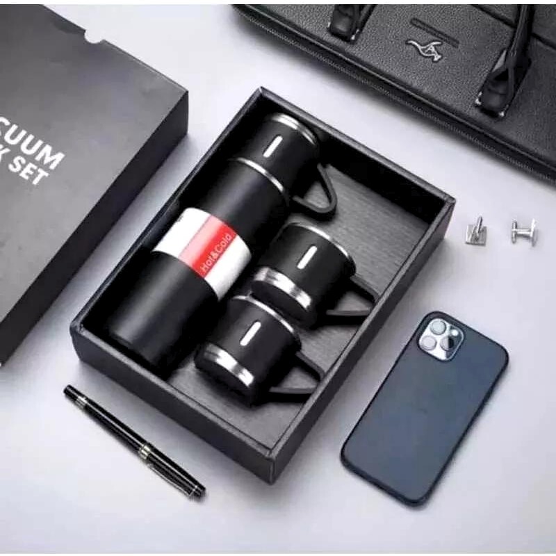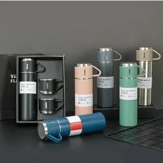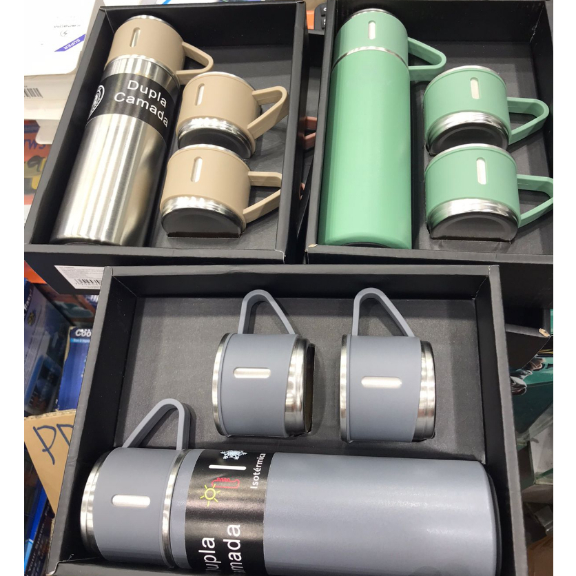 Kit Garrafa Térmica Vacuum Flask Set 500ml Com 3 Xícaras a vácuo Duplo Aço