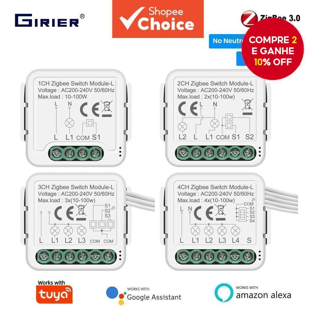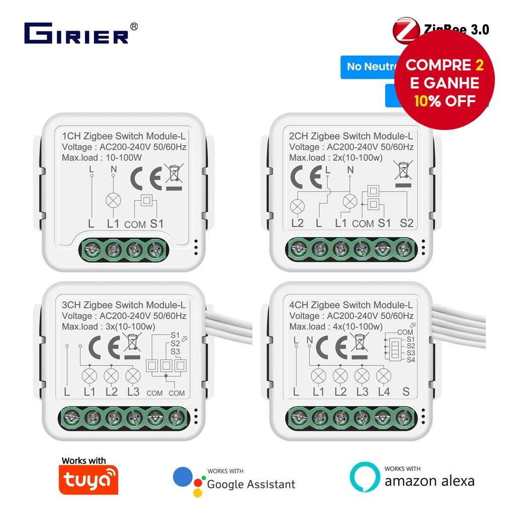 Módulo De Interruptor Inteligente GIRIER Tuya ZigBee 3.0 , Sem Necessidade De Fio Neutro , 1/2/3/4 Gang , Relés De Disju