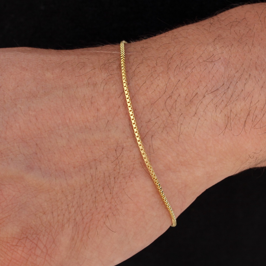 Pulseira Masculina Fina Veneziana 1mm Banhado a Ouro 18k