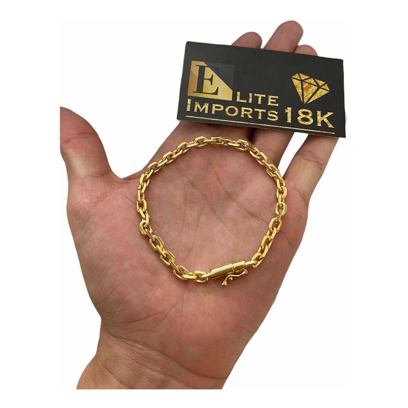 Pulseira de Ouro 3mm 4,5g Banhada a Ouro 24k Pulseira Masculina Carrier Cadeado