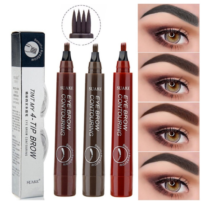 LT 3D Caneta Para Sobrancelhas Microblading Eyebrow Pen À Prova D'água 4 Pontas De Garfo Lápis Tatuagem De Longa Duração Esboço Profissional Fino De 4 Cores Olhos Líquidos