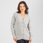 Casaco De Lã Trançando Feminino Com Botão Tricot Inverno
