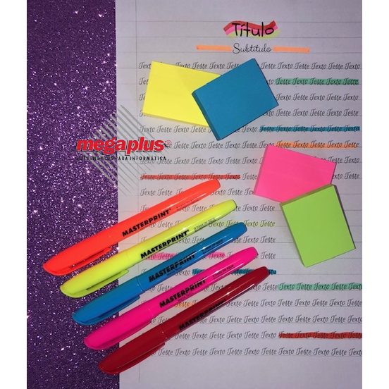 Kit 5 Marca texto Neon + 4 Blocos de notas autoadesivas