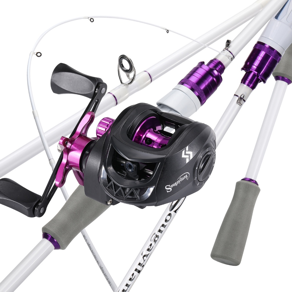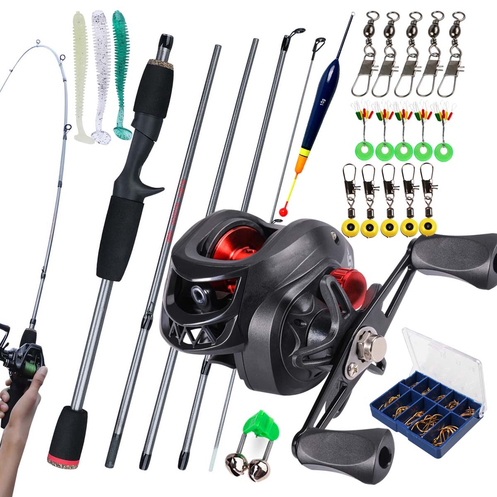 Sougayilang Vara De Pesca De Fundição Fibra De Carbono 10LB 2 Seções 1.8M Joran Pancing and Baitcasting Reel 7.2 : 1 Relação Engrenagem Max Drag 8KG Viagem Para Água Doce