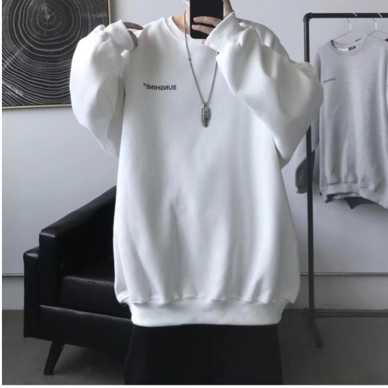 Coreano Inverno Tendência Unisexo Vestuário Masculino Manga Longa Sólida Camisola De Pescoço Longo Moda Simples Carta Imprimir Casal Camiseta Top Branco