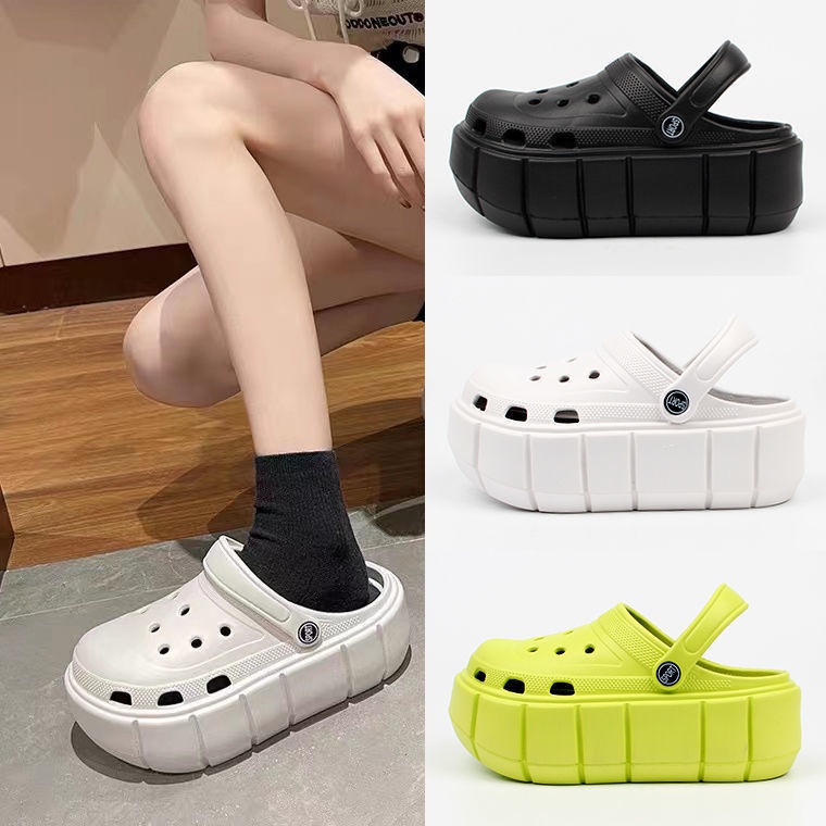 Crocs < Pronto Stock > Novos Chinelos De Tamancos De Crocodilo Para Mulheres Sandálias De Plataforma Bonitas Lady Non-slip Casual Beach Shoes Tamanho Grande 36-41