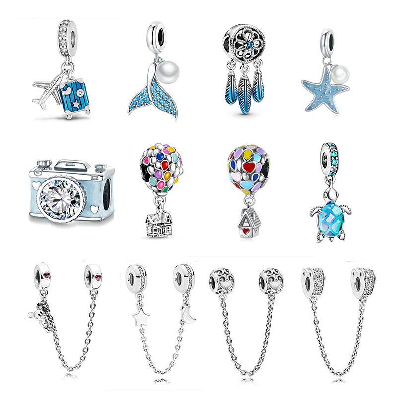 hotsam berloque Novo S925 Com Contas Big Hole DIY Bracelet Acessórios Estilo Planeta Azul