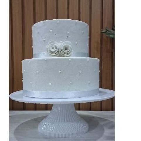 Base Bolo Fake Cenográfico Branco Com Pérolas e Tira Casamento Batizado | 40cm Altura 30cm Diametro