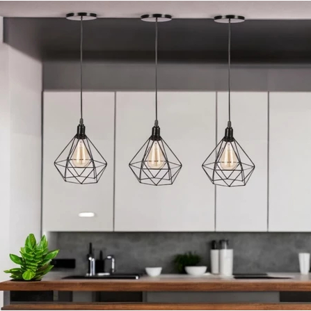 Kit 3 Pendente Aramado Diamante Luminária Lustre Teto Retro Industrial Cabo 1m Moderno preto