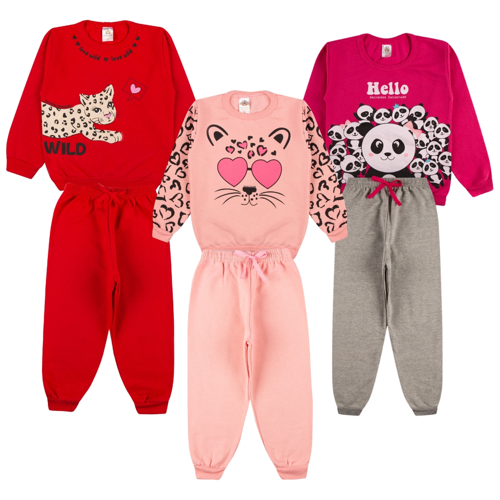 Kit Sortido 6 Peças de Roupas Feminino Infantil Inverno – 3 blusas casacos + 3 calças de 1 ao 10 – Kit 3 Conjuntos Moletom Infantil Menina Inverno Coleção 2024