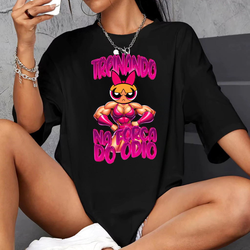Camiseta de Academia 100% Algodão Treinando na força do ódio Tshirt Feminina Lindinha TreinoCrossfit