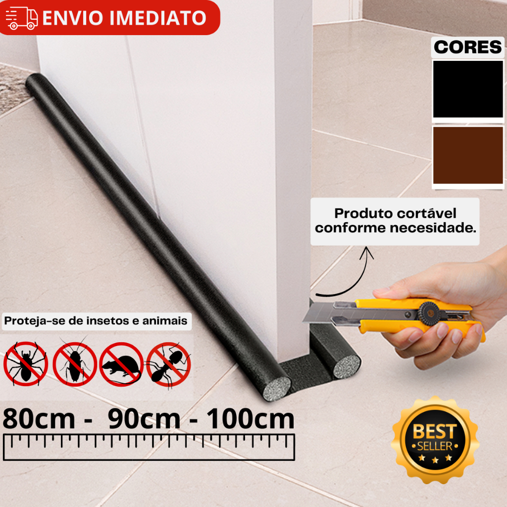 Veda Porta Protetor de 70cm 80cm 90cm e 100cm Rolinho Impermeável Vedação De Porta Duplo Para Não Entra Bicho Vedapó