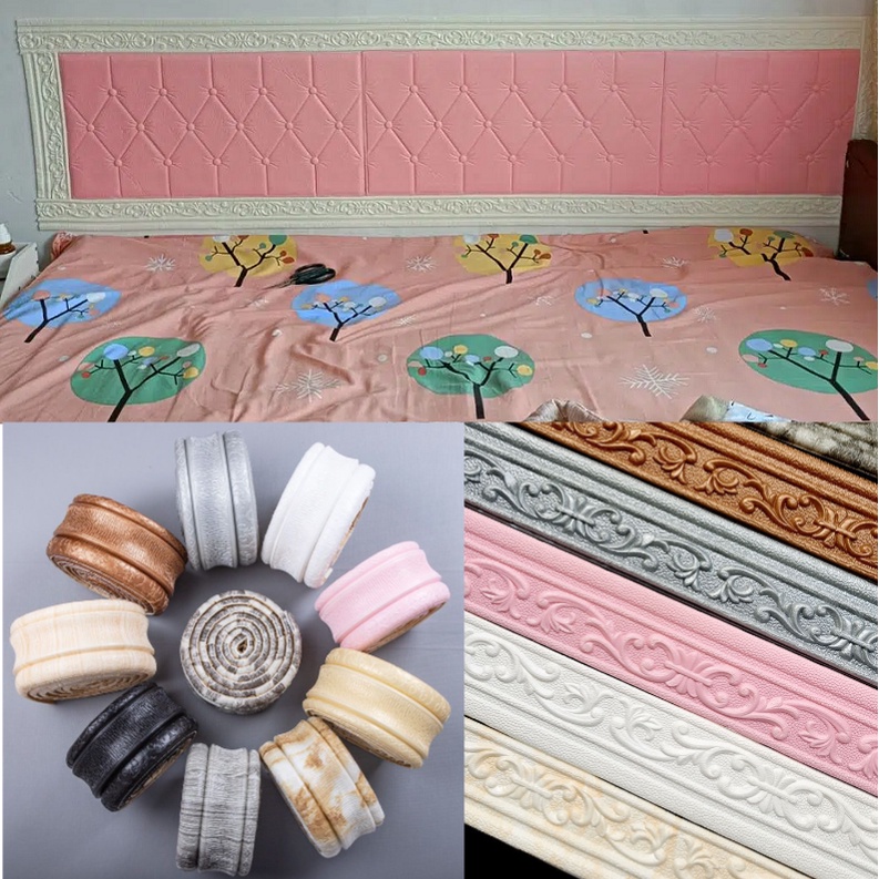 Linha de cintura de cola de parede 3D, fita macia impermeável, moldura de cabeceira anti-colisão de espuma autoadesiva