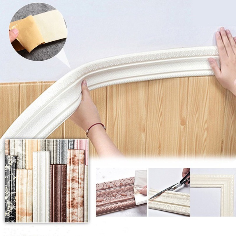 2,3mx5cm Adesivo De Parede Com Linha De Rodapé , Auto-Cintura Estrutura De Espuma 3D De Vedação De Borda Faixa Decorativa De Fundo anti-Colisão À Prova D'água