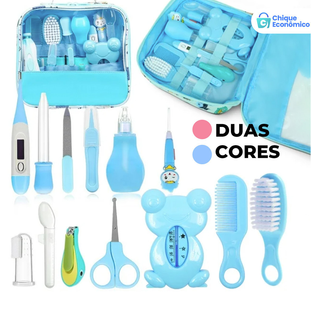 Bolsa Com Kit Para Cuidados De Higiene E Saúde Do Seu Bebê Com 13 Peças Contém Termômetro Escova Cortador E Outros Produtos