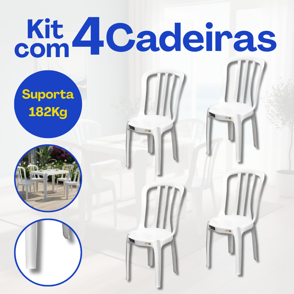 Kit Cadeiras Plástica P/até 182 Kg Resistente