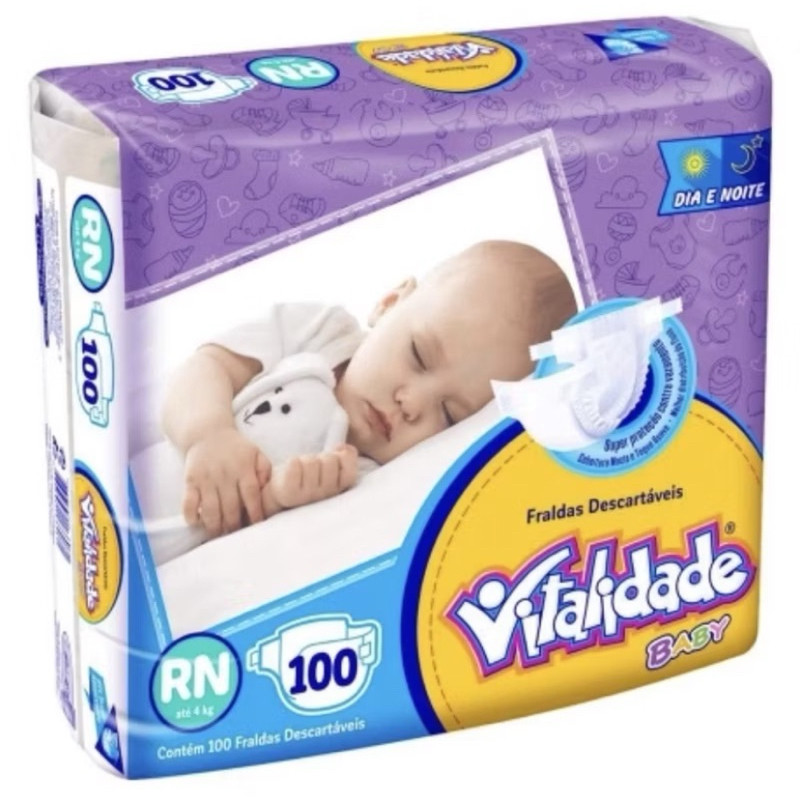 Fralda Descartável Infantil Pacotão VITALIDADE BABY RN /RECÉM NASCIDO 100 UNIDADES