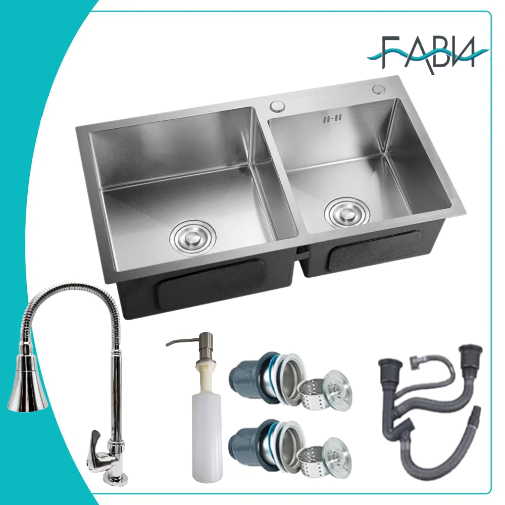 Cuba Dupla Inox Quadrada Cozinha Pia Gourmet Prata 75x43CM com Torneira com pedestal de prata/preto
