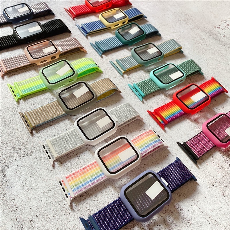 Bracelete Esportiva De nylon + Caixa De Vidro Para Pulseira De Maçã 44mm 40mm 45mm 41mm 42mm 44/45mm iWatch Série Ultra 8 se 7 6 5 4 3 2 1 Capa