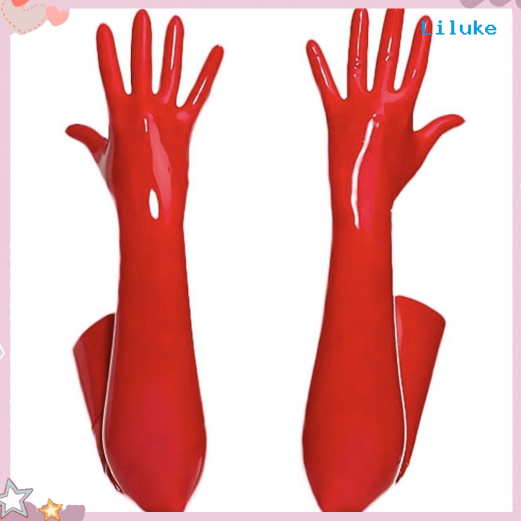 [LK] 1 Par Luvas De Dança De Alta Elasticidade Cor Sólida Brilhante Palco De Couro Mostrar Longas Cosplay Acessórios
