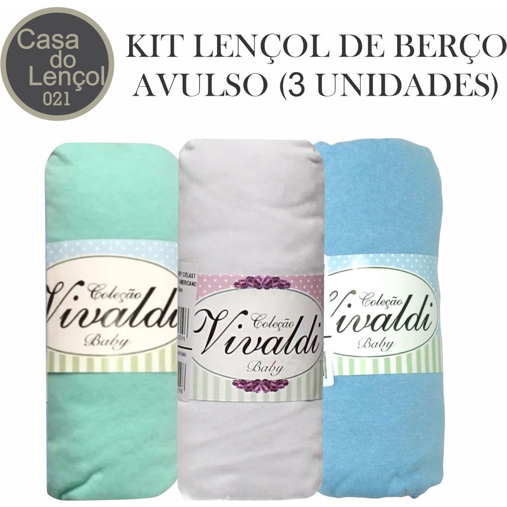Kit 3 Lençol de Berço com Elástico Malha Americano 100% algodão coleção Vivaldi SulBrasil