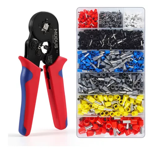Alicate Crimpar Prensa Fio + Caixa Box Com 1200 Terminal Ilhos Tubular 0,25 Até 10mm²