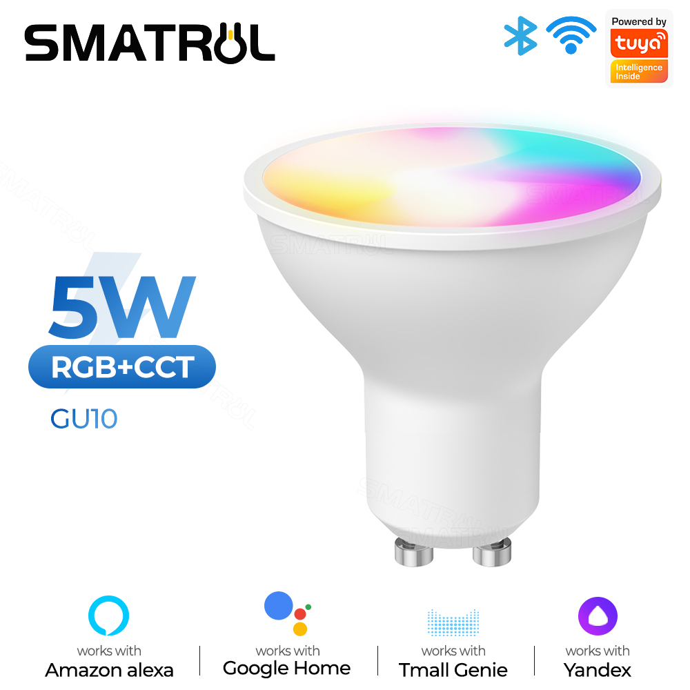 SMATRUL Tuya GU10 Lâmpadas LED Inteligentes WiFi RGBCW 5W Reguláveis Controle Remoto De Vida Útil Inteligente Trabalho Com Alexa Google Home