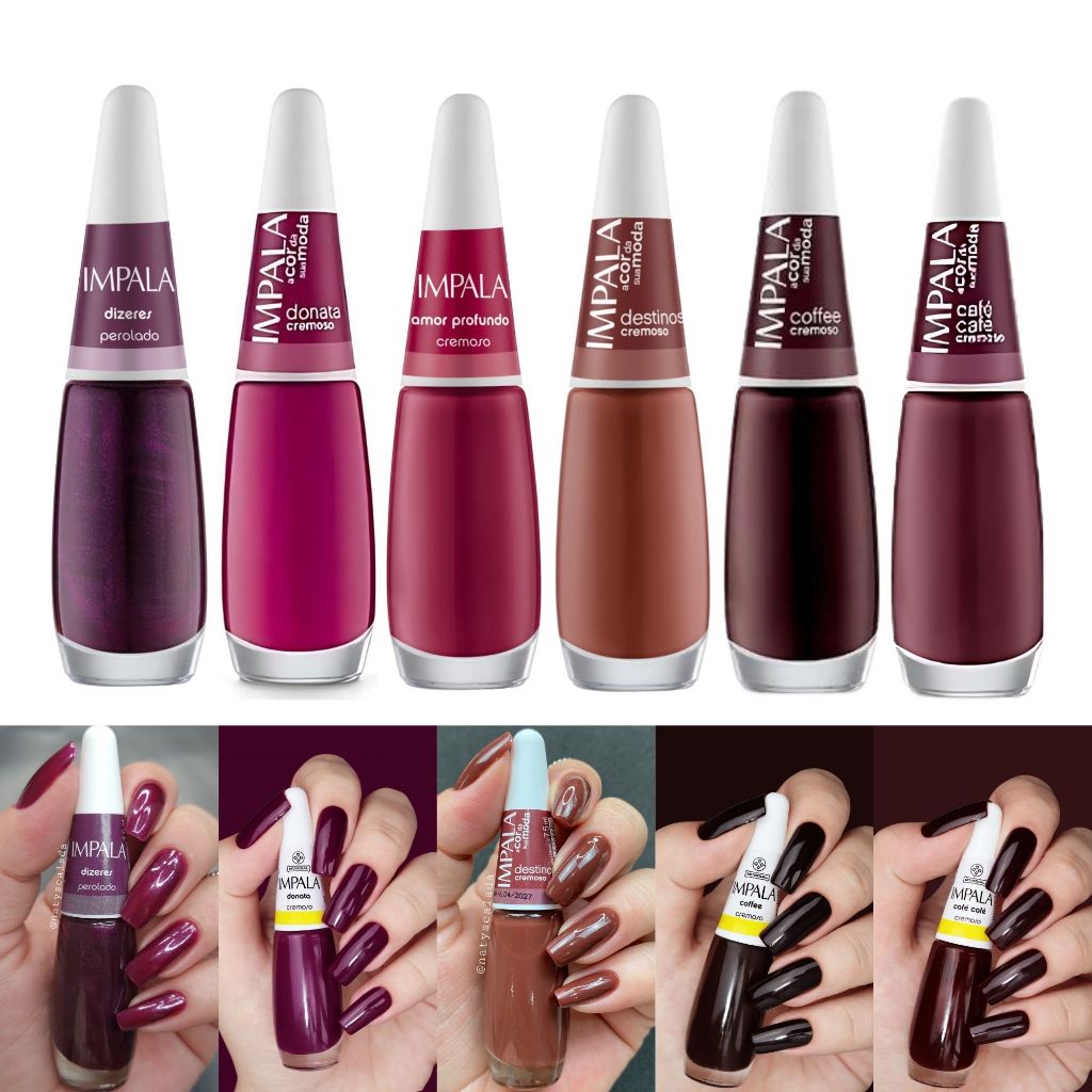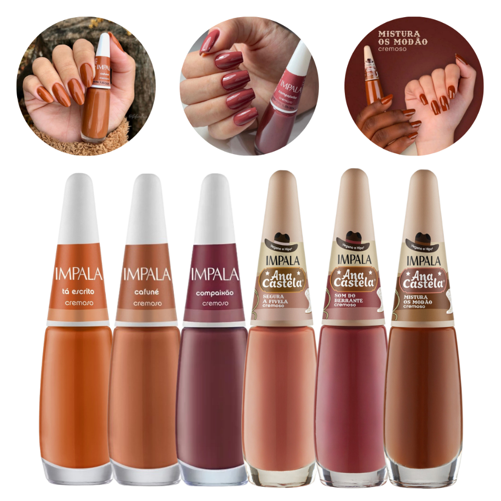 Kit 6 Esmaltes Impala Marrom Cor da moda Tendencia inverno Outono Manicure Lançamento Ana Castela