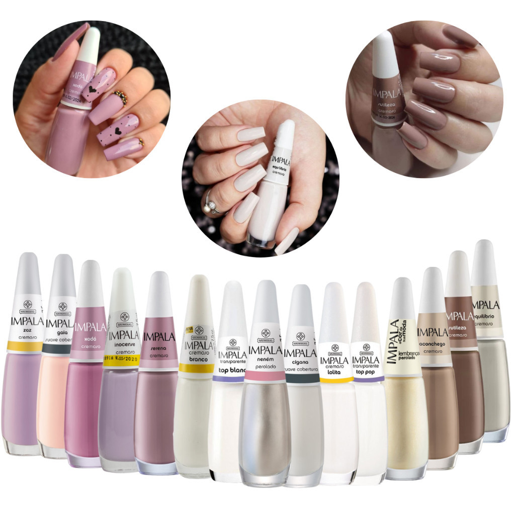 kit C/ 15 Esmaltes Impala Cores Nudes E Branquinhos Manicure Pedicure