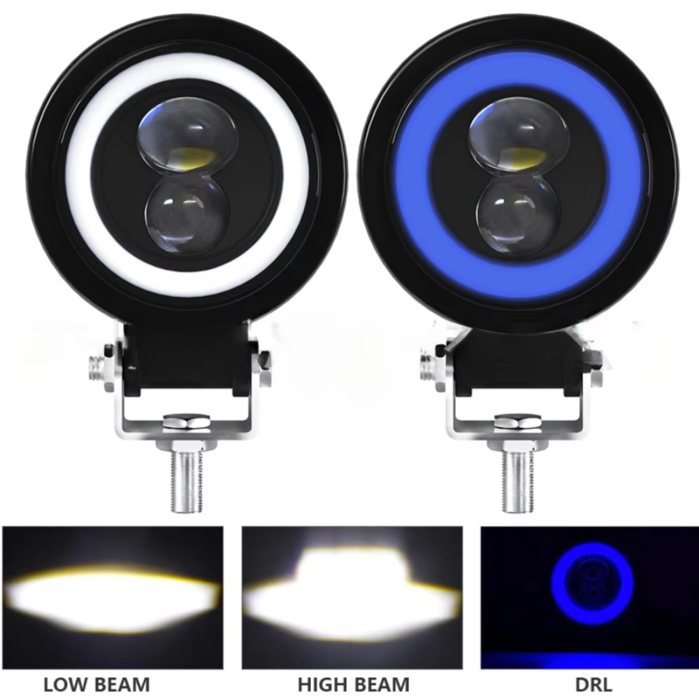 Par Farol Auxiliar Milha Mini 10W Grande U7 U5 30W Led Luz Branco Azul Alta Potencia Angel Eye Alto Baixo Strobo Para Moto Xre300 Nxrbroz125