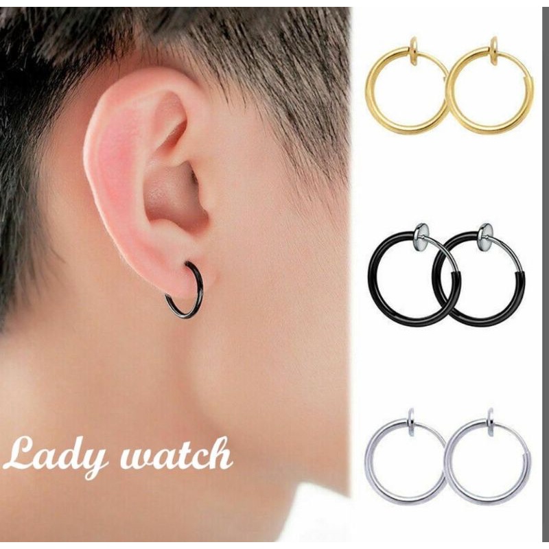 Brinco Pressão Fake 1 par de Argolas Aço inoxidável Antialérgico sem furo sem dor