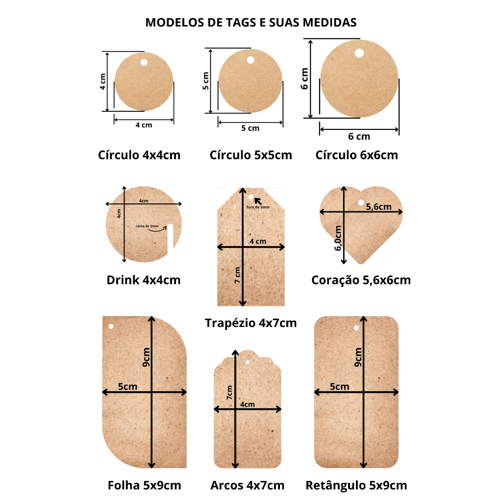 TAG Papel Kraft 180g PERSONALIZADA impressão EM PRETO dos 2 lados (frente e verso) - varios modelos