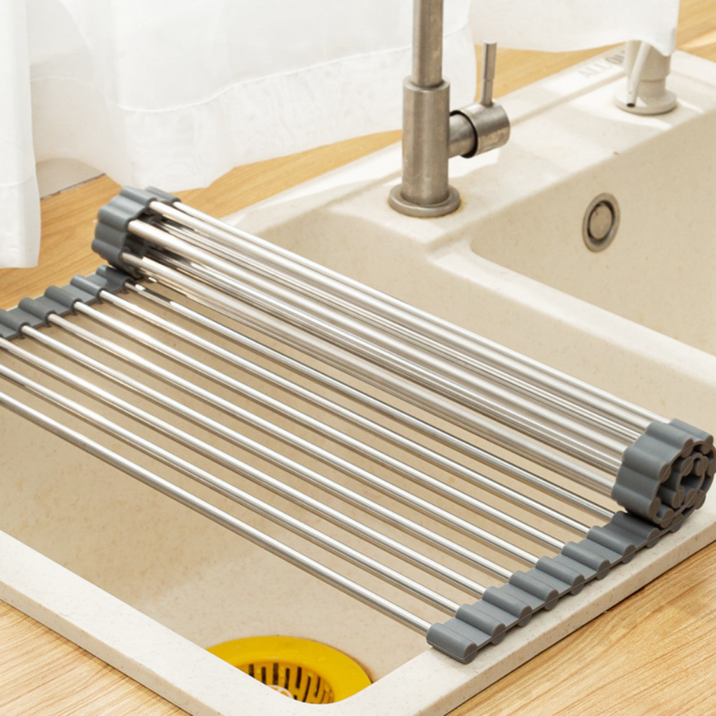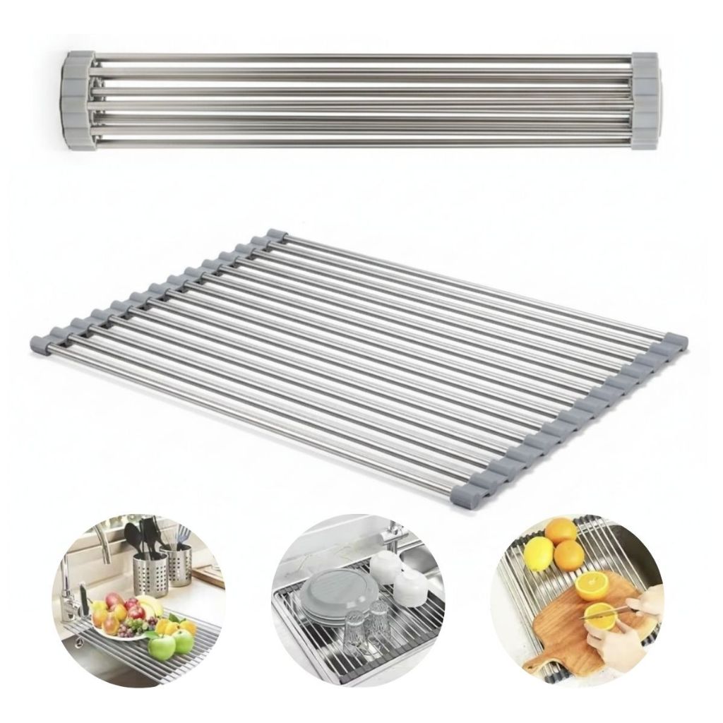 Escorredor Esteira de Louça Verduras Frutas Dobrável para Pia Portátil Aço Inox