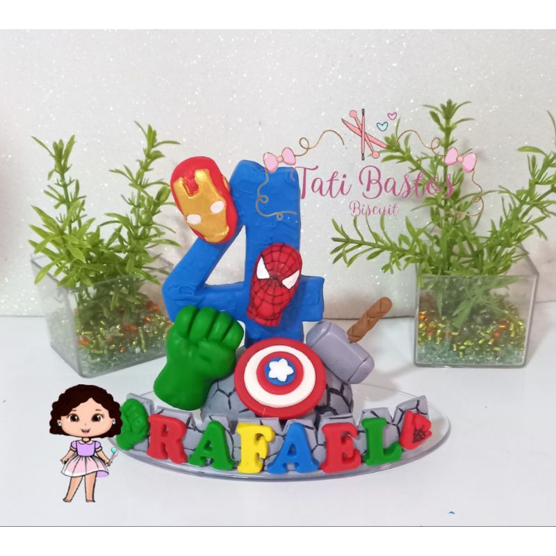 Vela Topo de bolo Personalizado Super Heróis Vingadores Liga da Justiça em biscuit festa aniversário com pavio mágico