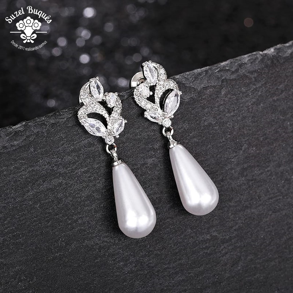 Brinco Strass Pérola Prata Noiva Festa Casamentos