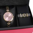 Kit Relógio Feminino Dourado + Colar Brincos e Caixa