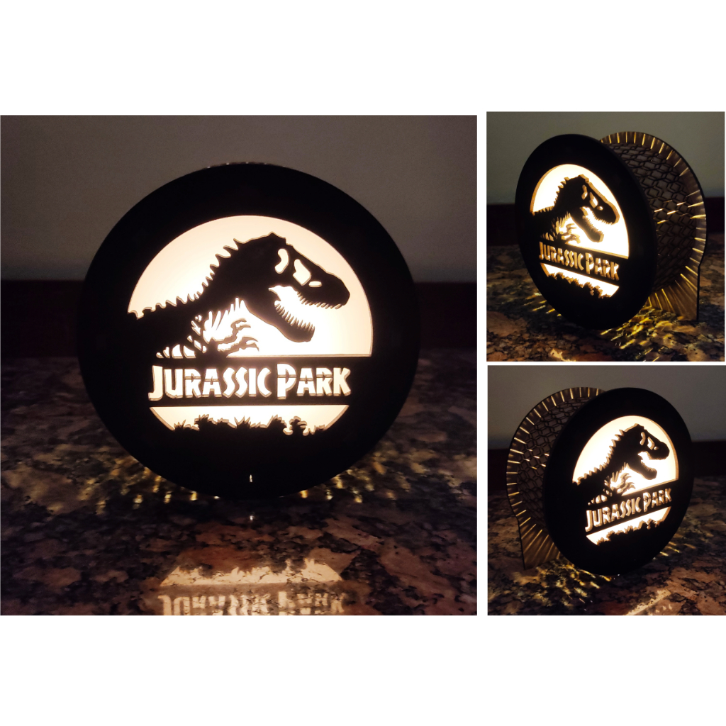 Luminária Abajur Jurassic Park Dinossauro De Mesa Decorativa Geek Gamer