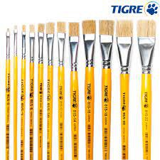 Kit com 5 Pincéis Chato Tigre Cerda Brasil Pintura Pincel Artesanato Ponta Fina
