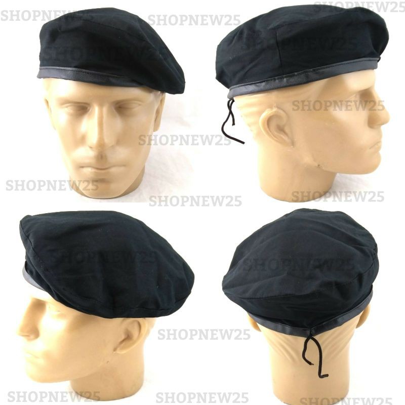 Boina Militar Preta de Tecido forrada ajuste de Tamanho