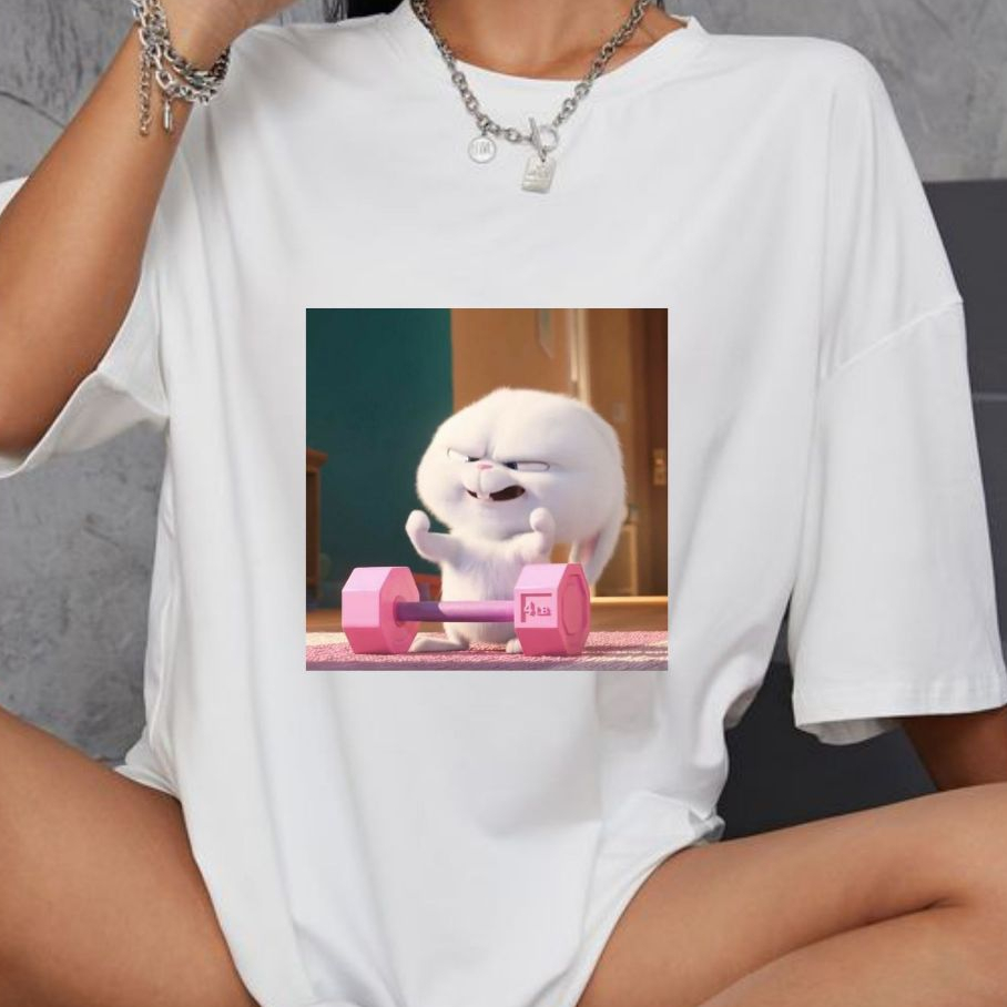Camiseta "Eu Treino fofo" Snowball, Coelhinho Filme Pets Unissex, Blusa Treino Fofo, Camisa Treino Fofo, Academia