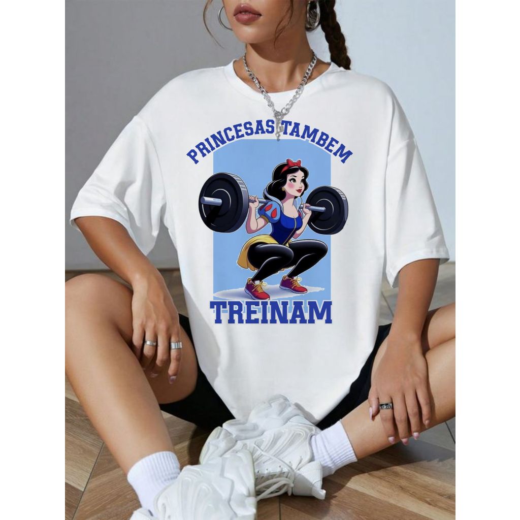 Camiseta de academia Blusa feminina treino maromba, princesas minnie docinho, plus size leg day
