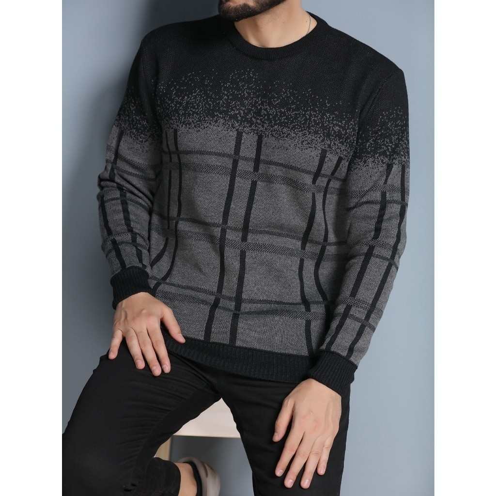 Suéter Tricô Blusa de Frio Masculino Degrade Gola Redonda Manga longa de Lã Outono e Inverno