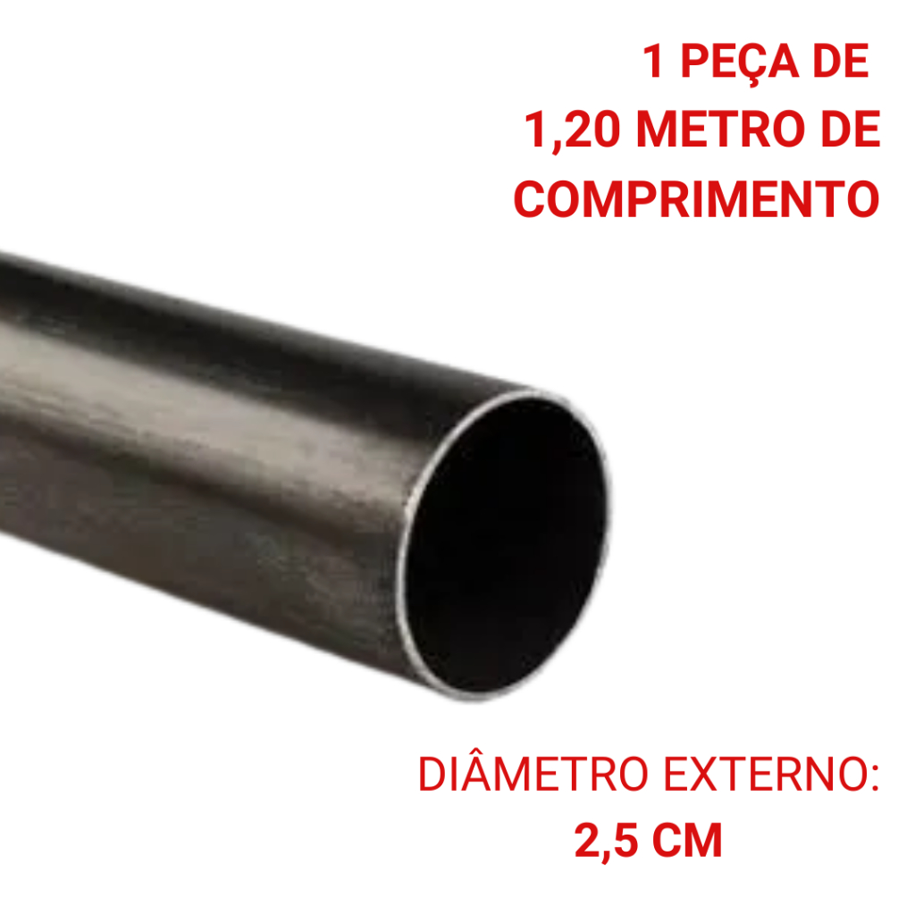 Metalon Redondo 1p Tubo Preto De Aço - Chapa 2mm - 1 peça de 1,20 metros