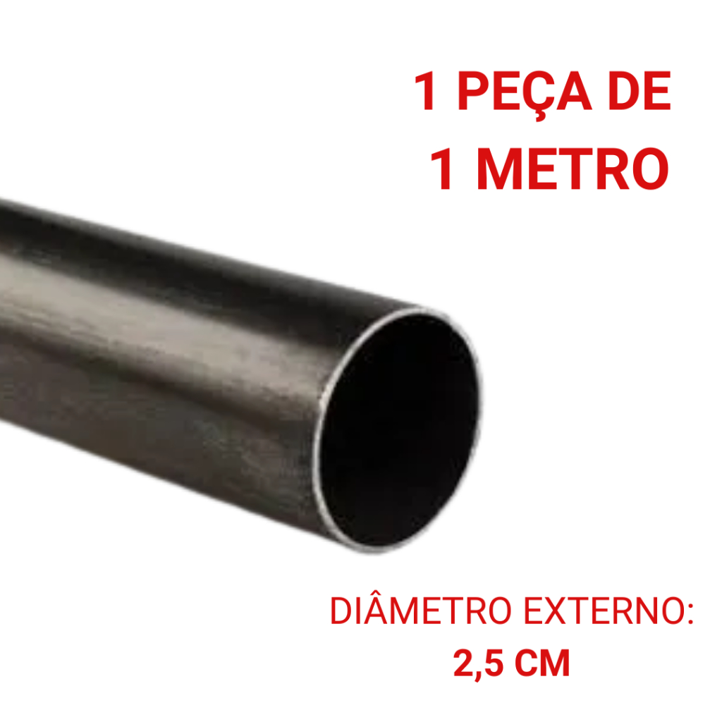 Metalon Redondo 1p (25,4mm) Tubo Preto De Aço - Chapa 2mm - 1metro