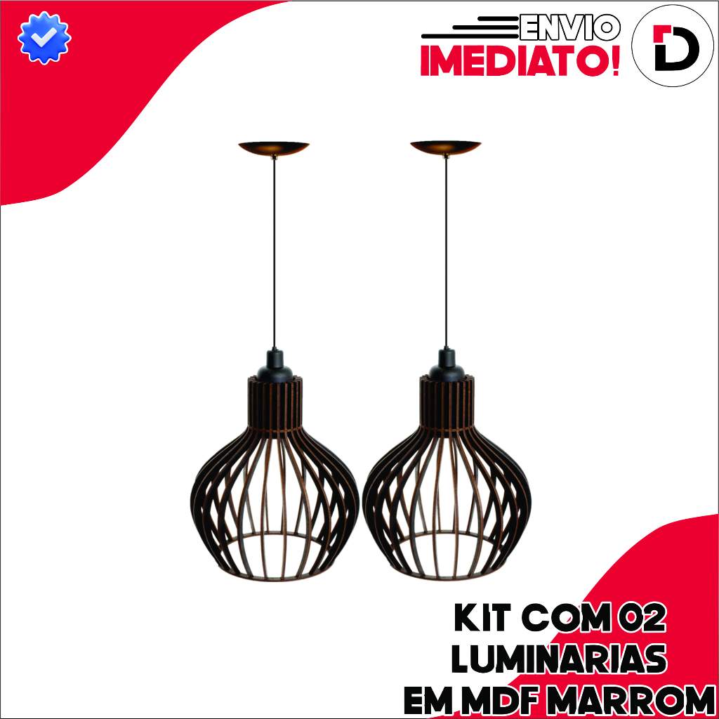 Kit 2 Luminárias Oca Marrom Decoração Madeira MDF Luxoso Sem Fio