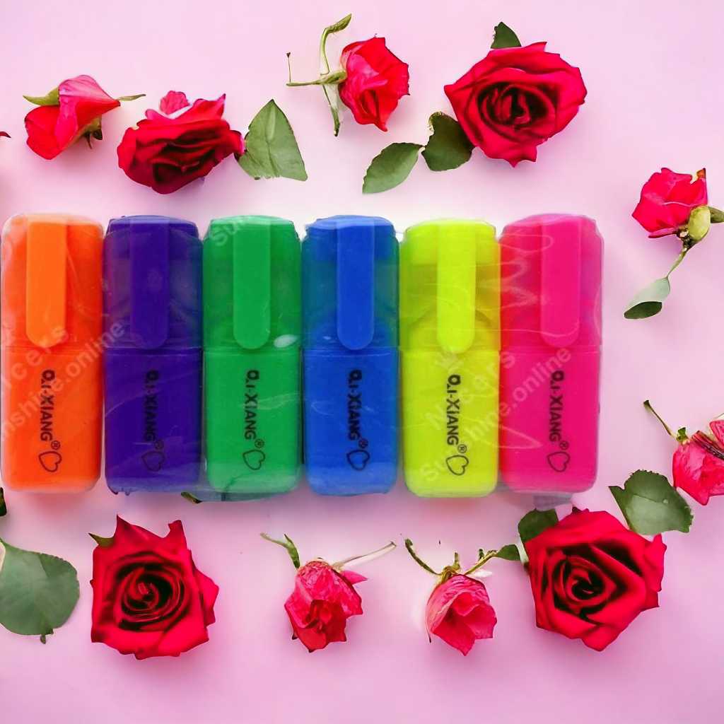 kit 3 pacotes de 6 Cores Marca Texto QiXiang Coração Com Cores Escuro
