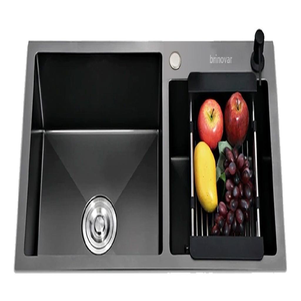 Cuba Pia Gourmet Dupla Preta Cozinha Aço Inox C/Acessórios Brinovar