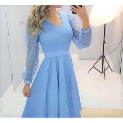 Vestido Feminino Mídi Com Manga Tule Moda Feminina Evangélica Social PLus Size