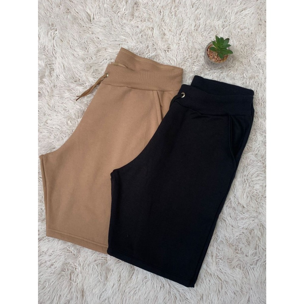Kit 2 Bermudas Short Masculino em Moletom Preto e Caramelo