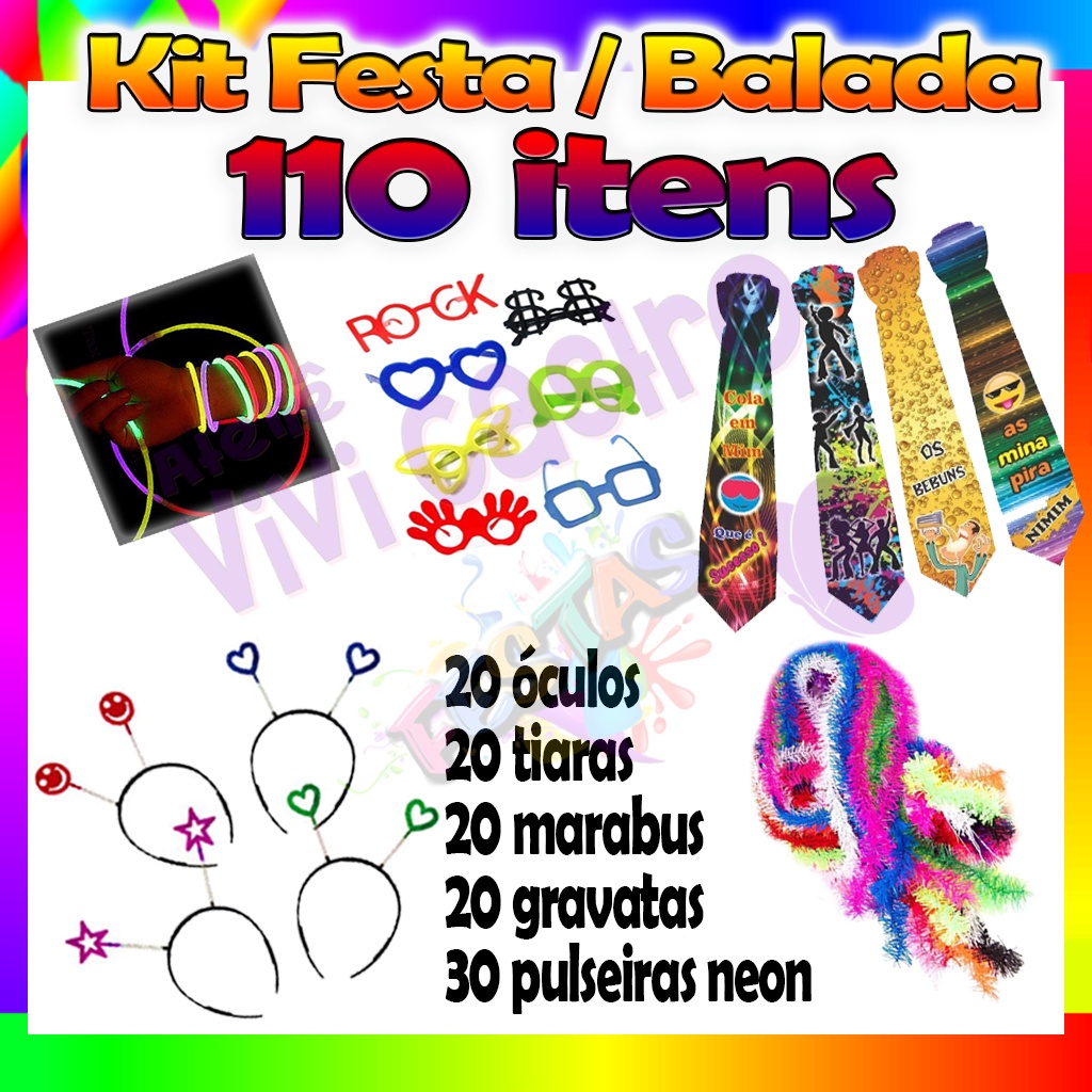 Kit Festa / Balada - 110 itens | Casamento | Aniversario | 15 anos | Formatura | Neon